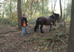In sommige gebieden kunnen we, vanwege de kwetsbare soorten die in deze gebieden voorkomen, niet met zware machines in het bos werken. In Limburg hebben we recent in zo’n gebied…